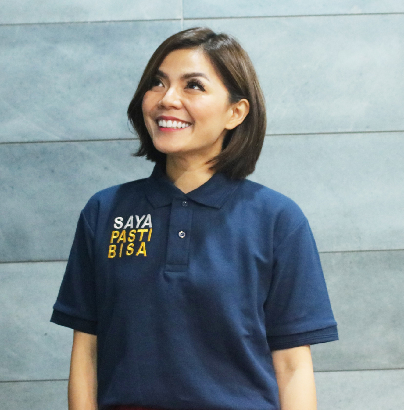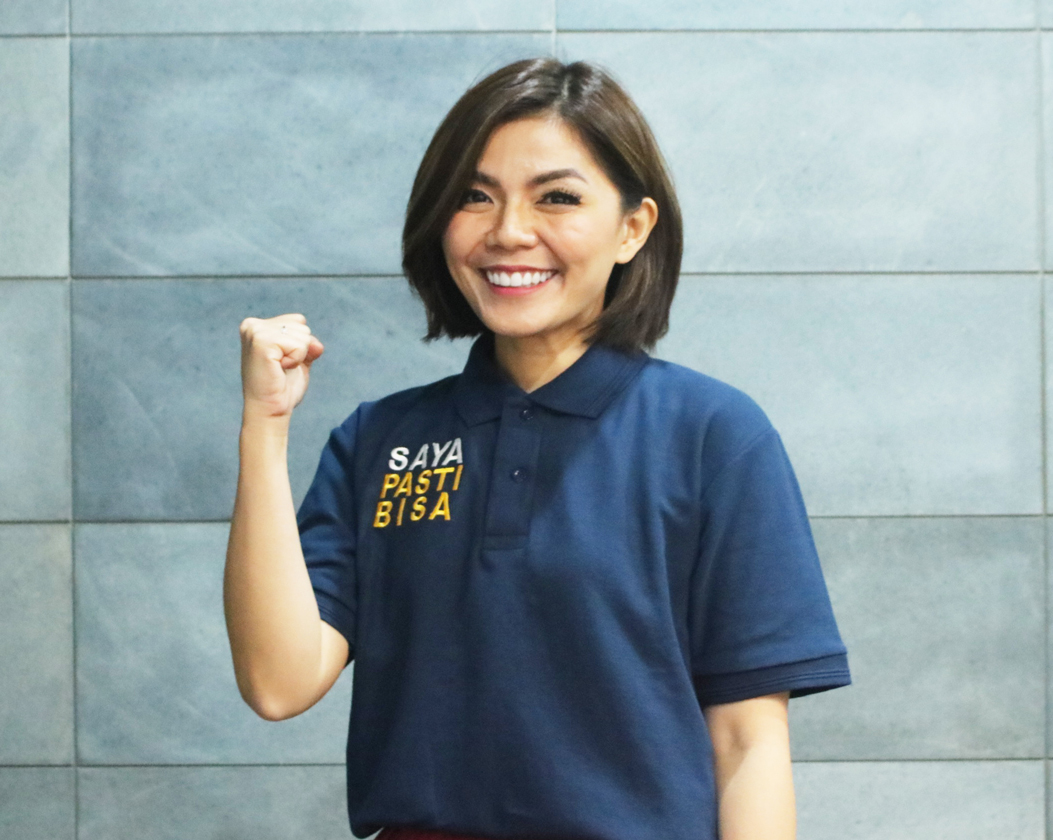 Kapan lagi bisa punya outfit kembaran dengan Miss Merry Riana kalau bukan sekarang juga dengan kaos SAYA PASTI BISA.